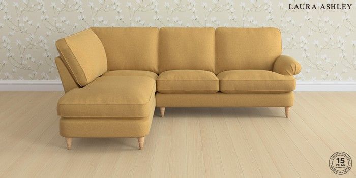 6.12.1 Buy Beaumaris by Laura Ashley Medium Sofa Chaise - Left Hand Peyton Ochre Yellow Low Turned - Light Oak from the Next UK online shop Click here to use our accessible website