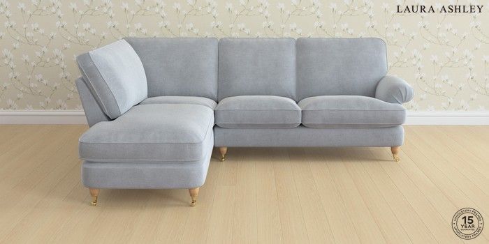 6.12.1 Buy Beaumaris by Laura Ashley Medium Sofa Chaise - Left Hand Peyton Powder Blue Low Brass Castor - Light Oak from the Next UK online shop Click here to use our accessible website