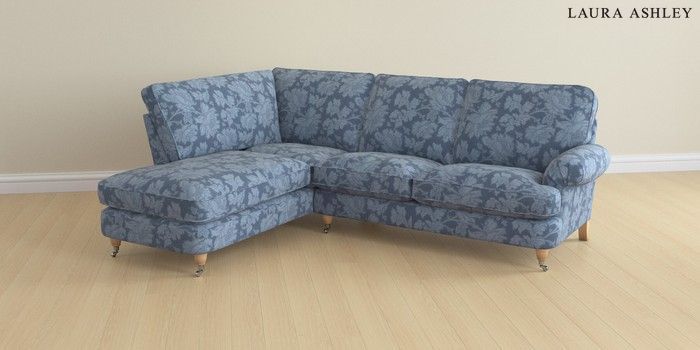 6.12.1 Buy Beaumaris by Laura Ashley Medium Sofa Chaise - Left Hand Tamara Dusky Seaspray Blue Low Chrome Castor - Light Oak from the Next UK online shop Click here to use our accessible website