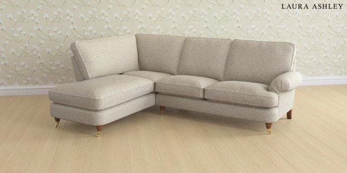 6.12.1 Buy Beaumaris by Laura Ashley Medium Sofa Chaise - Left Hand Tichwell Stone Natural Low Brass Castor - Teak from the Next UK online shop Click here to use our accessible website