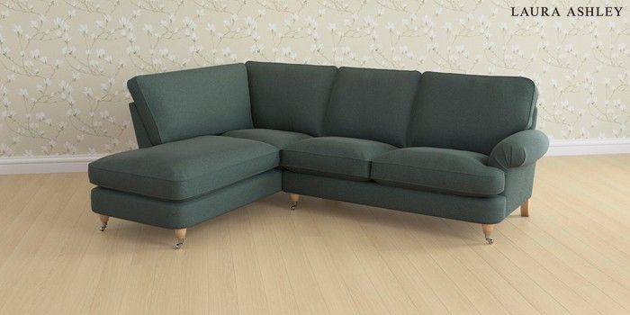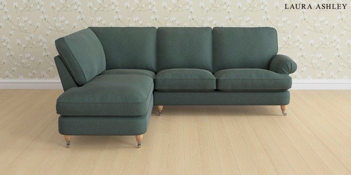 6.12.1 Buy Beaumaris by Laura Ashley Medium Sofa Chaise - Left Hand Wooton Forest Green Low Chrome Castor - Light Oak from the Next UK online shop Click here to use our accessible website