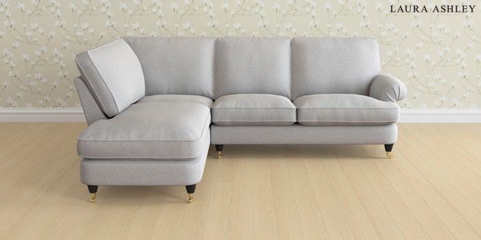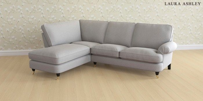 6.12.1 Buy Beaumaris by Laura Ashley Medium Sofa Chaise - Left Hand Wooton Pale Steel Grey Low Brass Castor - Black from the Next UK online shop Click here to use our accessible website
