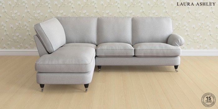 6.12.1 Buy Beaumaris by Laura Ashley Medium Sofa Chaise - Left Hand Wooton Pale Steel Grey Low Chrome Castor - Black from the Next UK online shop Click here to use our accessible website