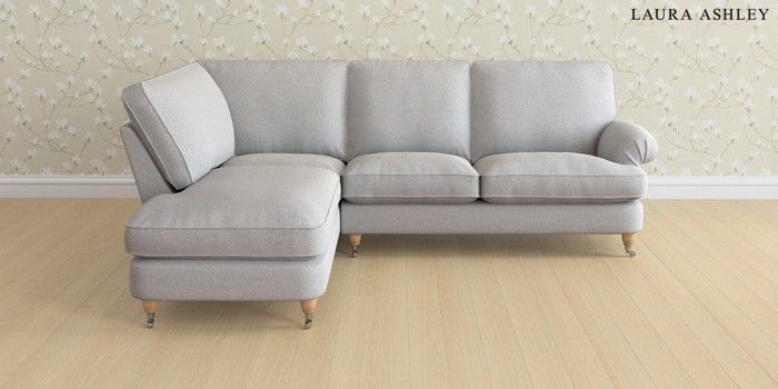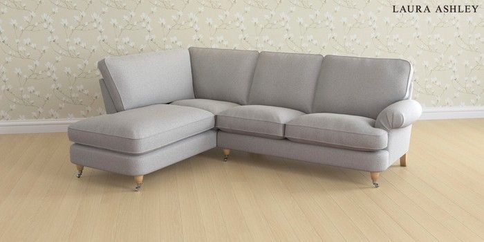 6.12.1 Buy Beaumaris by Laura Ashley Medium Sofa Chaise - Left Hand Wooton Pale Steel Grey Low Chrome Castor - Light Oak from the Next UK online shop Click here to use our accessible website