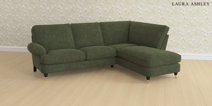 6.12.1 Buy Beaumaris by Laura Ashley Medium Sofa Chaise - Right Hand Alwyn Velvet Ivy Green Low Brass Castor - Black from the Next UK online shop Click here to use our accessible website