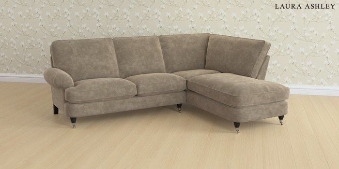 6.12.1 Buy Beaumaris by Laura Ashley Medium Sofa Chaise - Right Hand Alwyn Velvet Truffle Natural Low Chrome Castor - Black from the Next UK online shop Click here to use our accessible website
