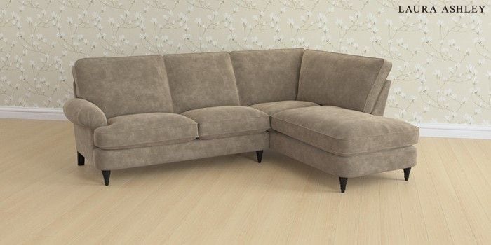 6.12.13 Buy Beaumaris by Laura Ashley Medium Sofa Chaise - Right Hand Alwyn Velvet Truffle Natural Low Turned - Black from the Next UK online shop Click here to use our accessible website