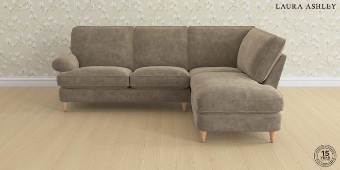 6.12.1 Buy Beaumaris by Laura Ashley Medium Sofa Chaise - Right Hand Alwyn Velvet Truffle Natural Low Turned - Light Oak from the Next UK online shop Click here to use our accessible website