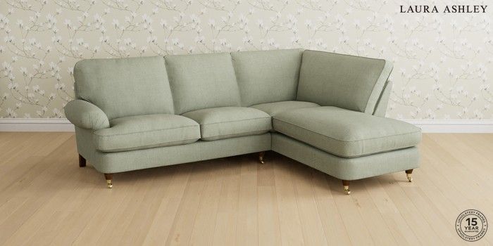 6.12.1 Buy Beaumaris by Laura Ashley Medium Sofa Chaise - Right Hand Anneliese Sage Green Low Brass Castor - Teak from the Next UK online shop Click here to use our accessible website