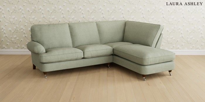 6.12.1 Buy Beaumaris by Laura Ashley Medium Sofa Chaise - Right Hand Anneliese Sage Green Low Chrome Castor - Teak from the Next UK online shop Click here to use our accessible website