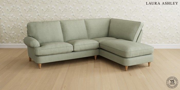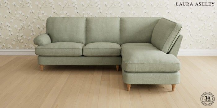 6.12.1 Buy Beaumaris by Laura Ashley Medium Sofa Chaise - Right Hand Anneliese Sage Green Low Turned - Light Oak from the Next UK online shop Click here to use our accessible website