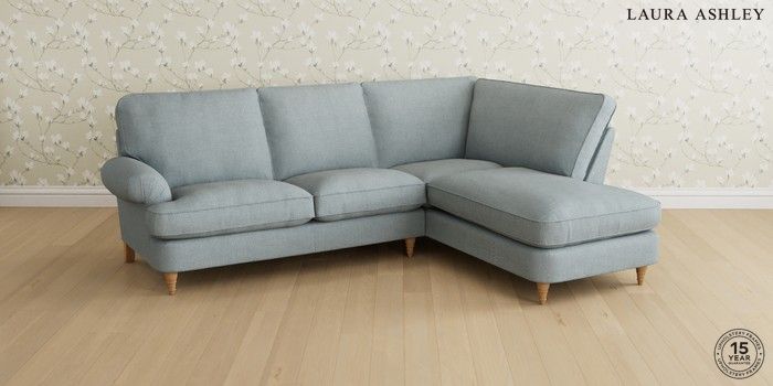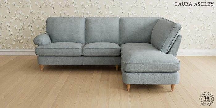 6.12.1 Buy Beaumaris by Laura Ashley Medium Sofa Chaise - Right Hand Anneliese Seaspray Blue Low Turned - Light Oak from the Next UK online shop Click here to use our accessible website