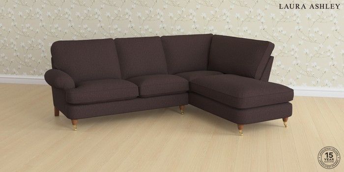 7.0.3 Buy Beaumaris by Laura Ashley Medium Sofa Chaise - Right Hand Bainton Chocolate Brown Low Brass Castor - Teak from the Next UK online shop Click here to use our accessible website