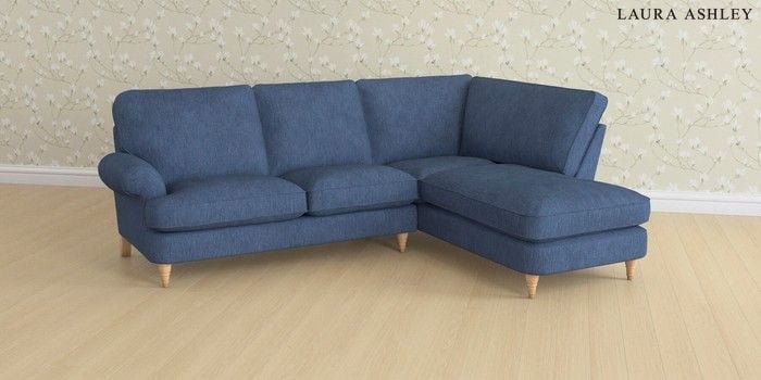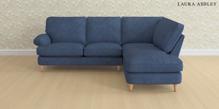 6.12.1 Buy Beaumaris by Laura Ashley Medium Sofa Chaise - Right Hand Bainton Midnight Navy Low Turned - Light Oak from the Next UK online shop Click here to use our accessible website