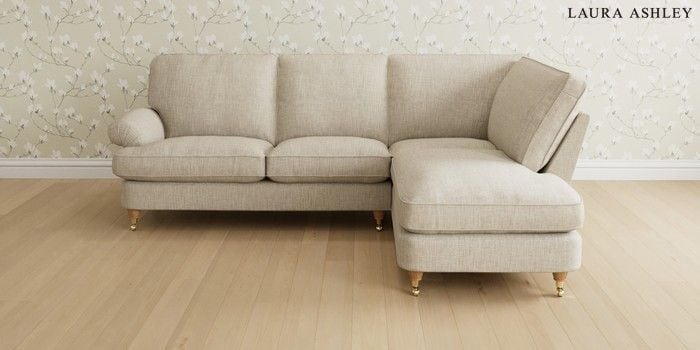 6.12.1 Buy Beaumaris by Laura Ashley Medium Sofa Chaise - Right Hand Bainton Natural Low Brass Castor - Light Oak from the Next UK online shop Click here to use our accessible website
