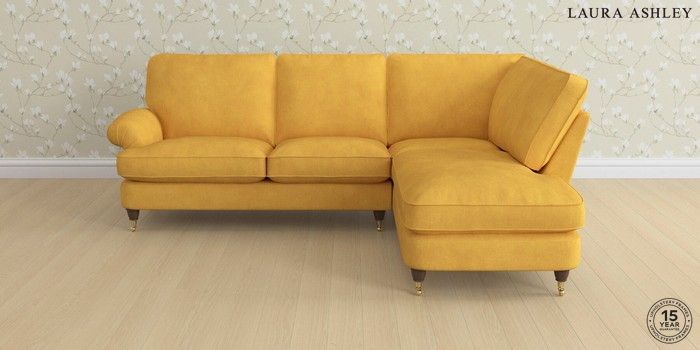 6.12.1 Buy Beaumaris by Laura Ashley Medium Sofa Chaise - Right Hand Bainton Ochre Yellow Low Brass Castor - Chestnut from the Next UK online shop Click here to use our accessible website