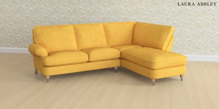 6.12.1 Buy Beaumaris by Laura Ashley Medium Sofa Chaise - Right Hand Bainton Ochre Yellow Low Chrome Castor - Light Oak from the Next UK online shop Click here to use our accessible website