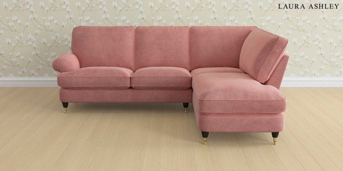 6.12.1 Buy Beaumaris by Laura Ashley Medium Sofa Chaise - Right Hand Bainton Old Rose Pink Low Brass Castor - Black from the Next UK online shop Click here to use our accessible website