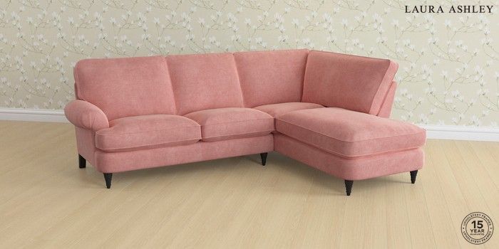 6.12.1 Buy Beaumaris by Laura Ashley Medium Sofa Chaise - Right Hand Bainton Old Rose Pink Low Turned - Black from the Next UK online shop Click here to use our accessible website