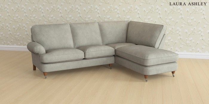 6.12.1 Buy Beaumaris by Laura Ashley Medium Sofa Chaise - Right Hand Bainton Pale Steel Grey Low Chrome Castor - Teak from the Next UK online shop Click here to use our accessible website