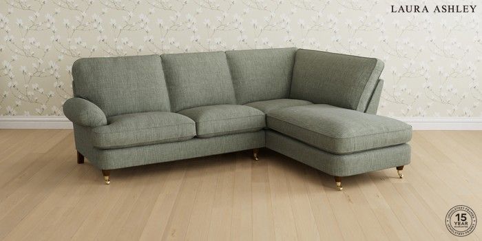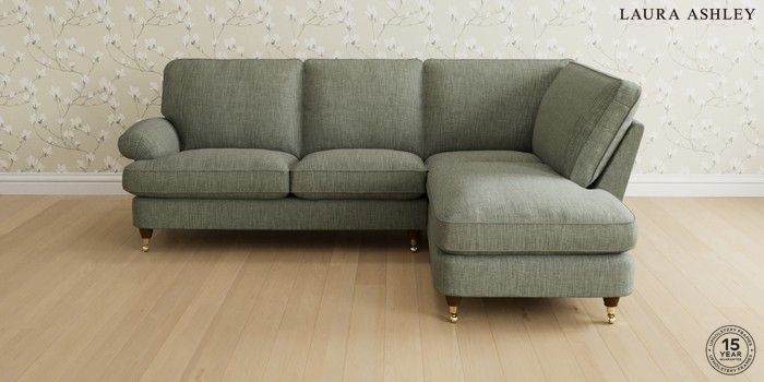 6.12.1 Buy Beaumaris by Laura Ashley Medium Sofa Chaise - Right Hand Bainton Sage Green Low Brass Castor - Teak from the Next UK online shop Click here to use our accessible website