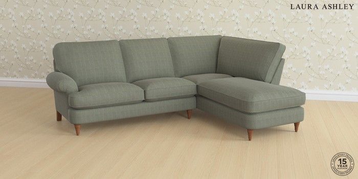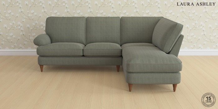 6.12.13 Buy Beaumaris by Laura Ashley Medium Sofa Chaise - Right Hand Birchgrove Check Olive Green Low Turned - Teak from the Next UK online shop Click here to use our accessible website