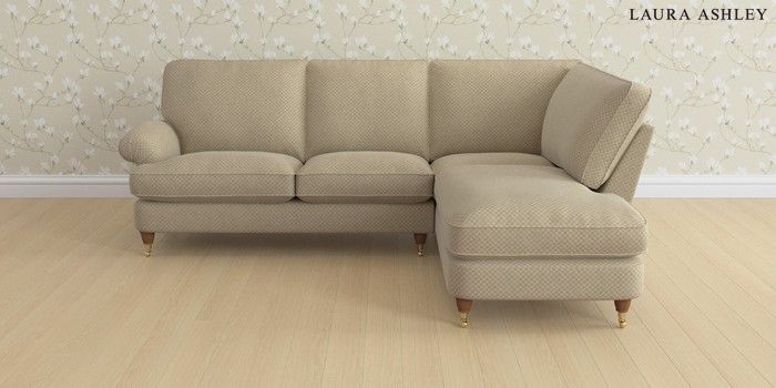 6.12.1 Buy Beaumaris by Laura Ashley Medium Sofa Chaise - Right Hand Chequers Hazelnut Natural Low Brass Castor - Teak from the Next UK online shop Click here to use our accessible website