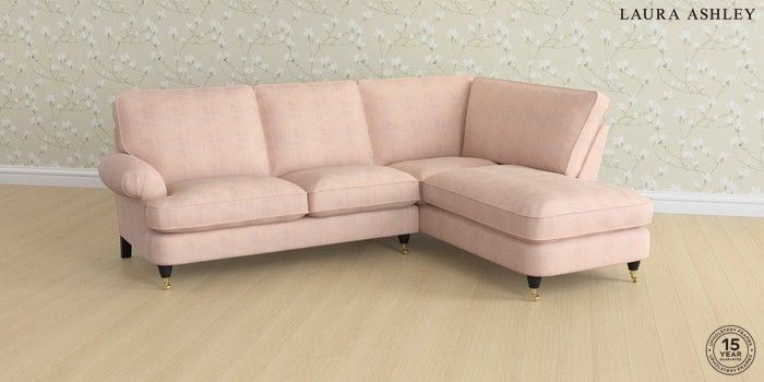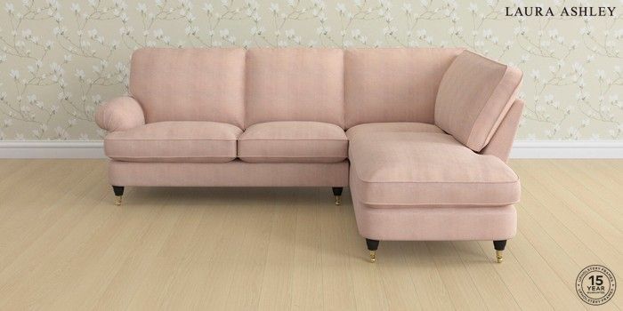 6.12.1 Buy Beaumaris by Laura Ashley Medium Sofa Chaise - Right Hand Edwin Chenille Blush Pink Low Brass Castor - Black from the Next UK online shop Click here to use our accessible website