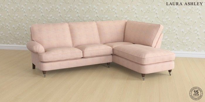 6.12.1 Buy Beaumaris by Laura Ashley Medium Sofa Chaise - Right Hand Edwin Chenille Blush Pink Low Chrome Castor - Chestnut from the Next UK online shop Click here to use our accessible website