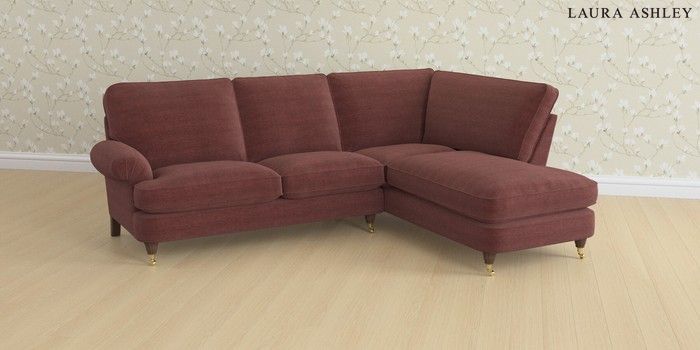 6.12.1 Buy Beaumaris by Laura Ashley Medium Sofa Chaise - Right Hand Edwin Chenille Burgundy Red Low Brass Castor - Chestnut from the Next UK online shop Click here to use our accessible website
