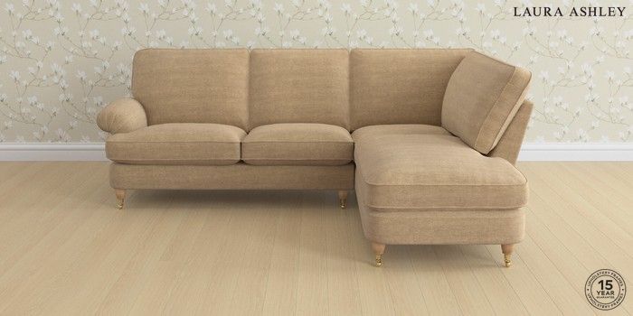 6.12.1 Buy Beaumaris by Laura Ashley Medium Sofa Chaise - Right Hand Edwin Chenille Gold Natural Low Brass Castor - Light Oak from the Next UK online shop Click here to use our accessible website