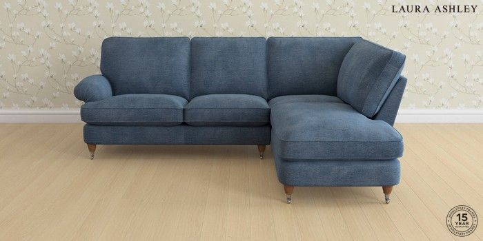 6.12.1 Buy Beaumaris by Laura Ashley Medium Sofa Chaise - Right Hand Edwin Chenille Seaspray Blue Low Chrome Castor - Teak from the Next UK online shop Click here to use our accessible website