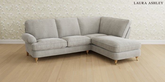 6.12.1 Buy Beaumaris by Laura Ashley Medium Sofa Chaise - Right Hand Edwin Chenille Silver Grey Low Brass Castor - Light Oak from the Next UK online shop Click here to use our accessible website