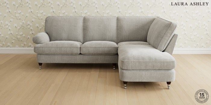 6.12.1 Buy Beaumaris by Laura Ashley Medium Sofa Chaise - Right Hand Edwin Chenille Silver Grey Low Chrome Castor - Chestnut from the Next UK online shop Click here to use our accessible website