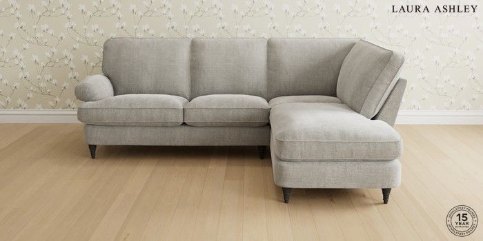 6.12.1 Buy Beaumaris by Laura Ashley Medium Sofa Chaise - Right Hand Edwin Chenille Silver Grey Low Turned - Black from the Next UK online shop Click here to use our accessible website
