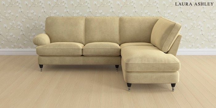 6.12.1 Buy Beaumaris by Laura Ashley Medium Sofa Chaise - Right Hand Edwin Chenille Truffle Natural Low Chrome Castor - Black from the Next UK online shop Click here to use our accessible website