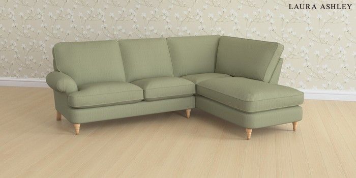 6.12.1 Buy Beaumaris by Laura Ashley Medium Sofa Chaise - Right Hand Edwin Herringbone Hedgerow Green Low Turned - Light Oak from the Next UK online shop Click here to use our accessible website