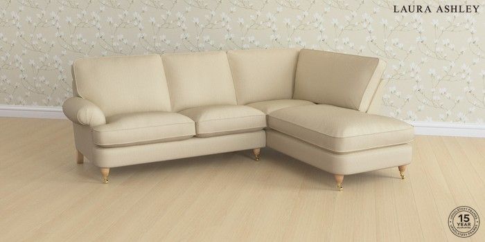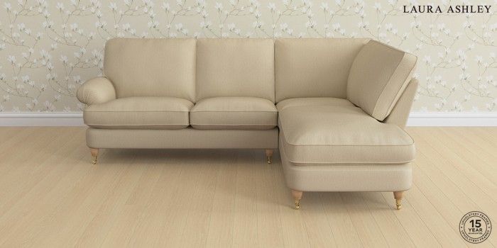6.12.1 Buy Beaumaris by Laura Ashley Medium Sofa Chaise - Right Hand Edwin Herringbone Natural Low Brass Castor - Light Oak from the Next UK online shop Click here to use our accessible website