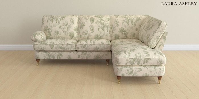6.12.1 Buy Beaumaris by Laura Ashley Medium Sofa Chaise - Right Hand Gosford Weave Sage Green Low Brass Castor - Teak from the Next UK online shop Click here to use our accessible website