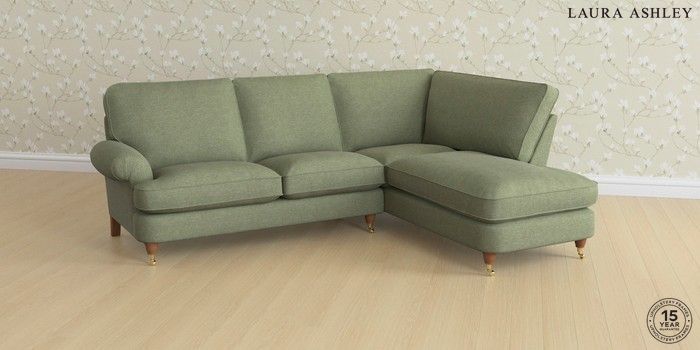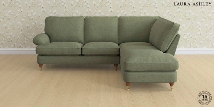 6.12.13 Buy Beaumaris by Laura Ashley Medium Sofa Chaise - Right Hand Harley Moss Green Low Brass Castor - Teak from the Next UK online shop Click here to use our accessible website