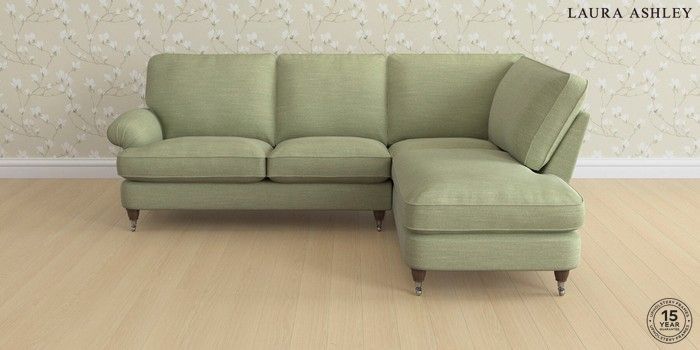 6.12.1 Buy Beaumaris by Laura Ashley Medium Sofa Chaise - Right Hand Kinsham Hedgerow Green Low Chrome Castor - Chestnut from the Next UK online shop Click here to use our accessible website