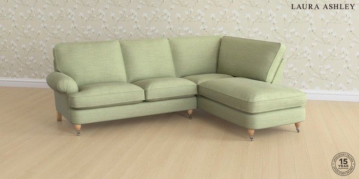 6.12.1 Buy Beaumaris by Laura Ashley Medium Sofa Chaise - Right Hand Kinsham Hedgerow Green Low Chrome Castor - Light Oak from the Next UK online shop Click here to use our accessible website