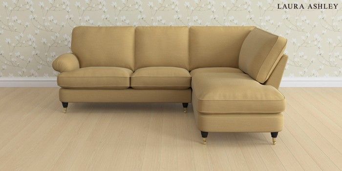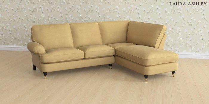 6.12.1 Buy Beaumaris by Laura Ashley Medium Sofa Chaise - Right Hand Kinsham Ochre Yellow Low Brass Castor - Black from the Next UK online shop Click here to use our accessible website
