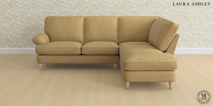6.12.1 Buy Beaumaris by Laura Ashley Medium Sofa Chaise - Right Hand Kinsham Ochre Yellow Low Turned - Light Oak from the Next UK online shop Click here to use our accessible website