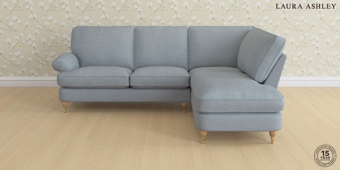 6.12.1 Buy Beaumaris by Laura Ashley Medium Sofa Chaise - Right Hand Kinsham Seaspray Blue Low Brass Castor - Light Oak from the Next UK online shop Click here to use our accessible website