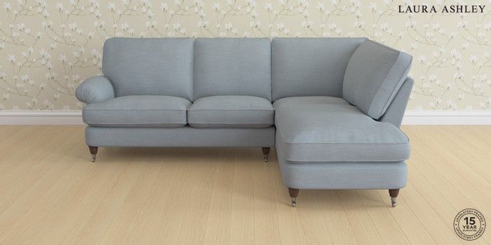 6.12.1 Buy Beaumaris by Laura Ashley Medium Sofa Chaise - Right Hand Kinsham Seaspray Blue Low Chrome Castor - Chestnut from the Next UK online shop Click here to use our accessible website