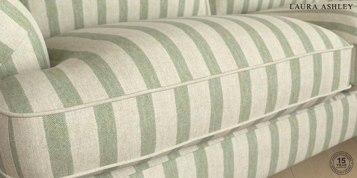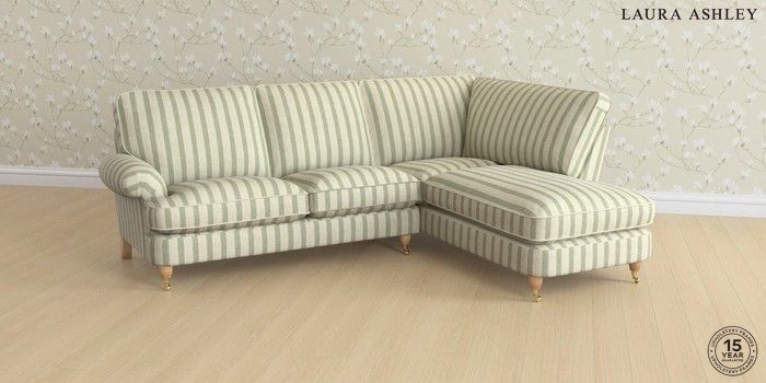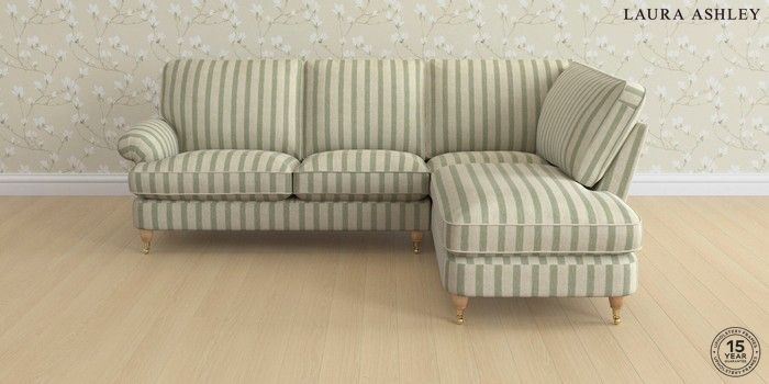 6.12.1 Buy Beaumaris by Laura Ashley Medium Sofa Chaise - Right Hand Kinsham Stripe Hedgerow Green Low Brass Castor - Light Oak from the Next UK online shop Click here to use our accessible website