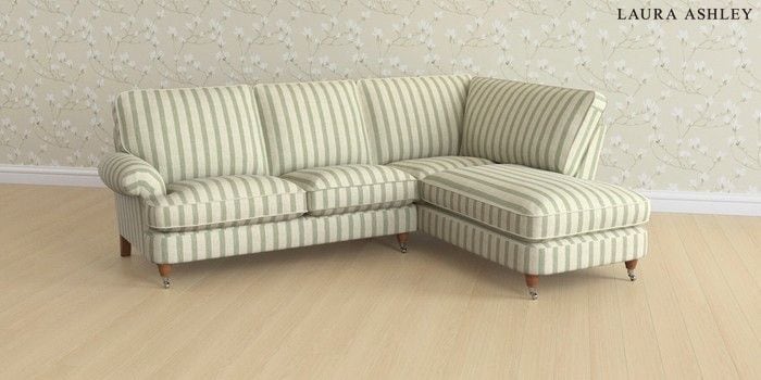 6.12.1 Buy Beaumaris by Laura Ashley Medium Sofa Chaise - Right Hand Kinsham Stripe Hedgerow Green Low Chrome Castor - Teak from the Next UK online shop Click here to use our accessible website