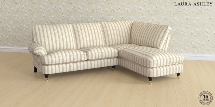 6.12.1 Buy Beaumaris by Laura Ashley Medium Sofa Chaise - Right Hand Kinsham Stripe Natural Low Brass Castor - Black from the Next UK online shop Click here to use our accessible website