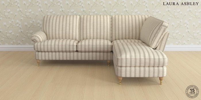 6.12.1 Buy Beaumaris by Laura Ashley Medium Sofa Chaise - Right Hand Kinsham Stripe Natural Low Brass Castor - Light Oak from the Next UK online shop Click here to use our accessible website